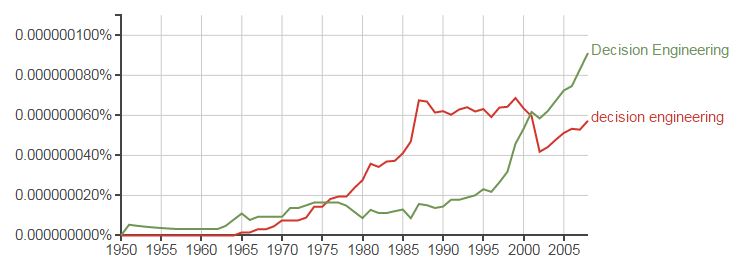 It is therefore tempting to describe some of what we do as decision engineering. However this term has been in circulation for some decades now, shown in this Google n-gram: